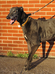 Scout has been the best dog this week. He was returned from a home that he lived in almost 4 years. He has been just perfect. He is very much a gentleman and loves to be loved. He is very laid back and mellow. He tested Cat Safe and did not seem to have a problem with all the little dogs at M&G. Scout eats well and sleeps thru the night although he has not been crated since I got him. He has had no accidents in the house. He loves to ride in the car and has no problems getting into the car by himself. He gets along well with the other 3 greys in the house even the puppy.